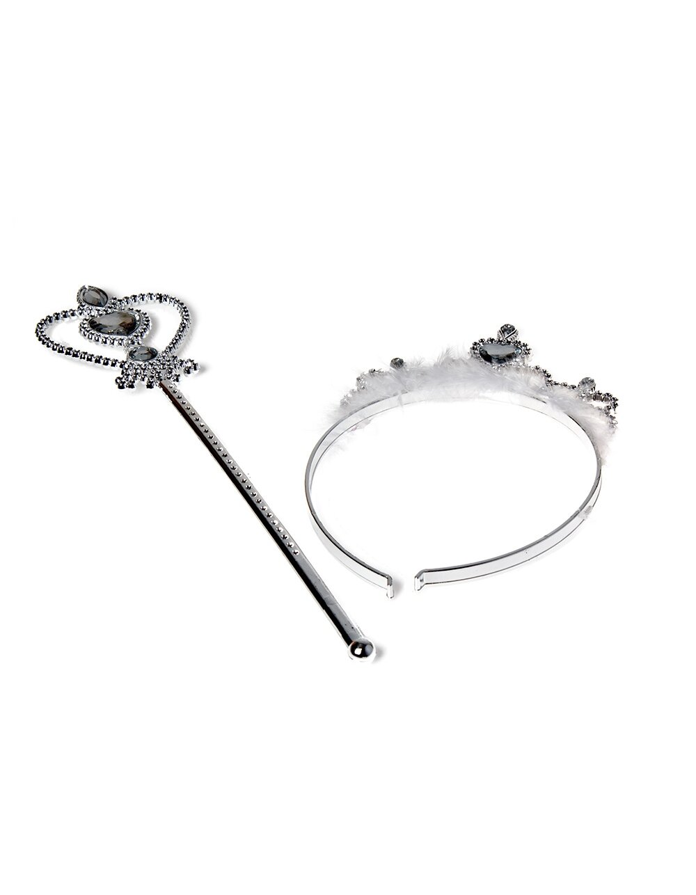 Corona y varita plateada set 2 pz
