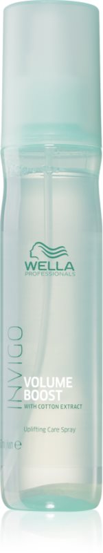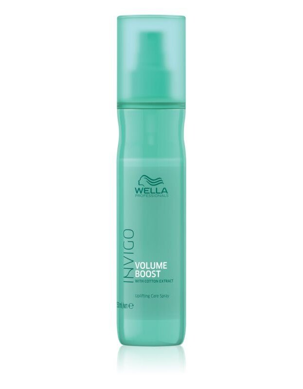Produsul care oferă volum instant este spray-ul Wella Professionals Invigo Volume Boost Uplifting Care Spray! Formula ușoară îmbogățită cu extract de bumbac, oferă maleabilitate și strălucire fără a încărca părul. Polimerii Spring Force înconjoară fibra de păr și ajută la crearea volumului în timpul uscării.