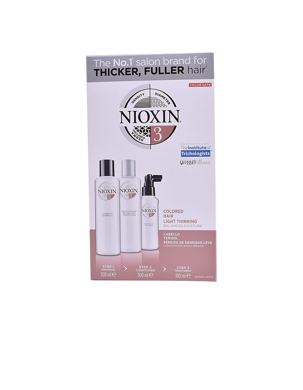 NIOXIN CLEANSER SYSTEM 3 - Sampon pentru par vopsit, impotriva caderilor normali a parului. Contine tehnologia PRO COLOR SHIELD ce ajuta la indepartarea sebumului, a acizilor grasi, a reziduurilor de mediu de pe suprafata scalpului si a parului, in timp ce asigura protectia culorii. NIOXIN SCALP REVITALIZING CONDITIONER SYSTEM 3 - Balsam pentru par vopsit, impotriva caderilor normali a parului. Contine tehnologia BIOAMP ce ajuta la fortificarea parului si la controlul echilibrului hidratarii. NIOXIN SCALP & HAIR TREATMENT SYSTEM 3 - Tratament pentru par vopsit, impotriva caderilor normali a parului. Contine tehnologia TRANSACTIVE DELIVERY SYSTEM 2.0 ce ofera parului grosime.