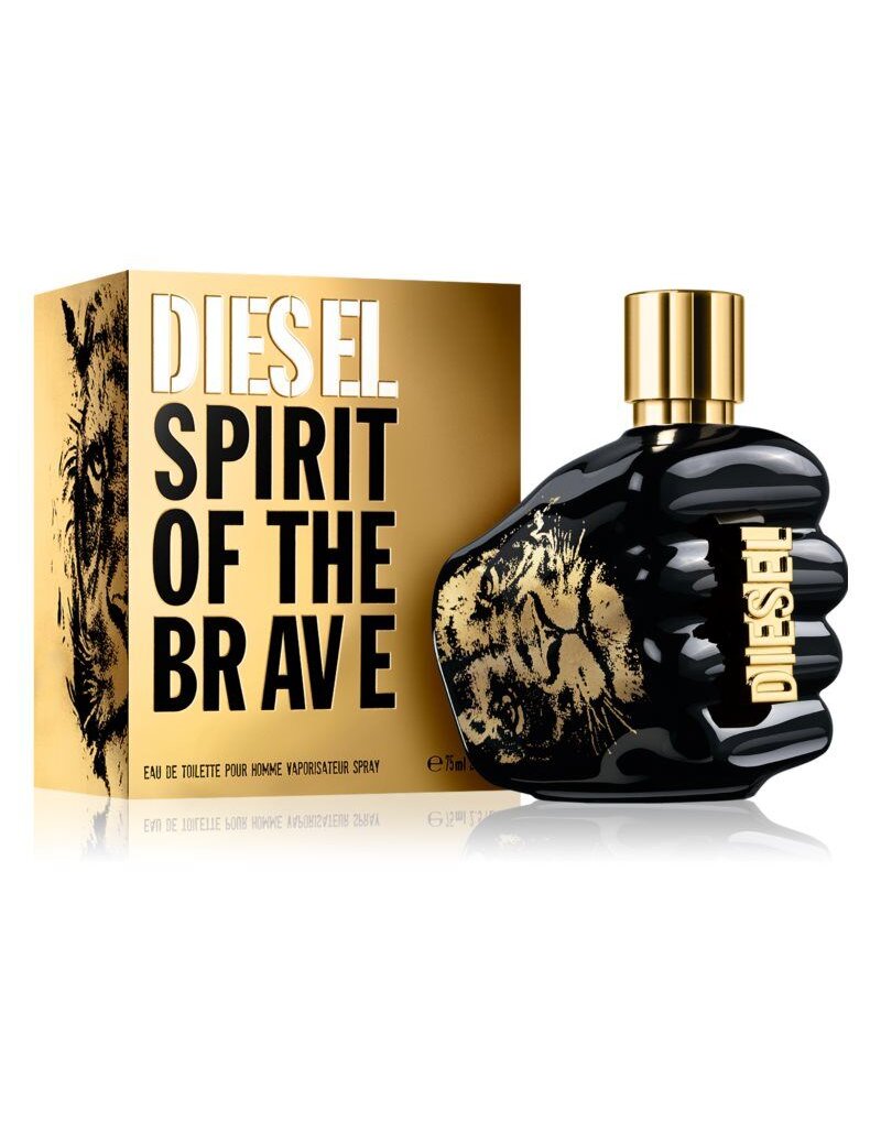 Povestea parfumului: Parfumul bărbătesc Spirit of Brave a apărut în anul 2019, în colaborare cu fotbalistul brazilian Neymar. Emblematicul flacon Diesel, de forma unei mâini strânse pumn, este de data aceasta de culoare neagră. Este decorat cu desene aurii, inclusiv cel al unui leu, similar tatuajului real de pe brațul celebrului fotbalist.