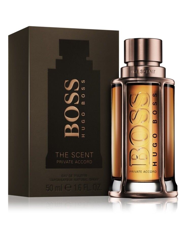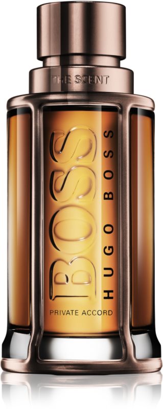 Compoziția debutează cu o notă de ghimbir, caldă și proaspătă. Originala inimă a parfumului pulsează în acorduri de maninka și de cafea. Baza, cu tonuri lemnoase și boabe de cacao prăjite formează impresia finală, senzual îmbătătoare, a parfumului Boss The Scent Private Accord.