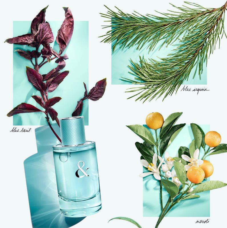 Parfumul își dezvăluie caracterul încă din primele clipe, când scânteietorul busuioc albastru, cultivat special pentru Tiffany, se împletește senzual cu tonurile de grepfrut. Apoi înflorește nota de neroli, urmată îndeaproape de sequoia albastră, a cărei aromă este prezentă nu doar în acest parfum, ci și în apa de toaletă pentru bărbați Tiffany & Love.