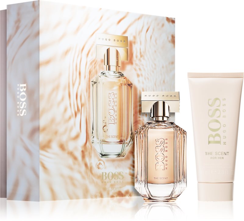 Multiplicați intensitatea parfumului preferat. Setul cu parfum feminin Hugo Boss BOSS The Scent conține, în afară de parfum, produse cosmetice, care prelungesc experiența olfactivă.