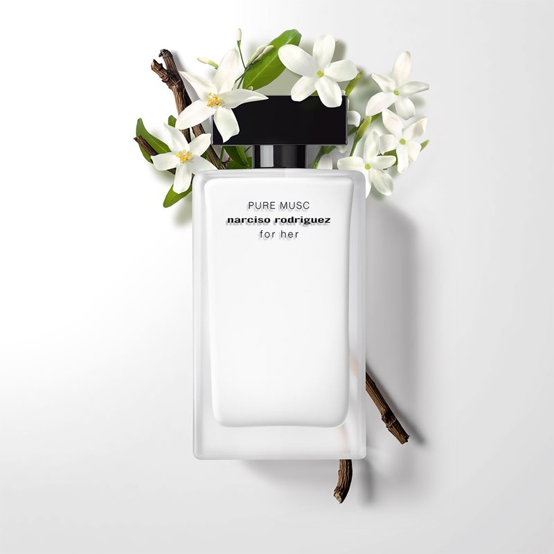Debutul parfumului Narciso Rodriguez For Her Pure Musc aparține esențelor seducătoare de iasomie și de flori proaspete de portocal. Inima este dominată de moscul senzual. Baza nobilă încântă cu tonuri intense de cașmir, accentuate de ambră și de paciuli dulce.