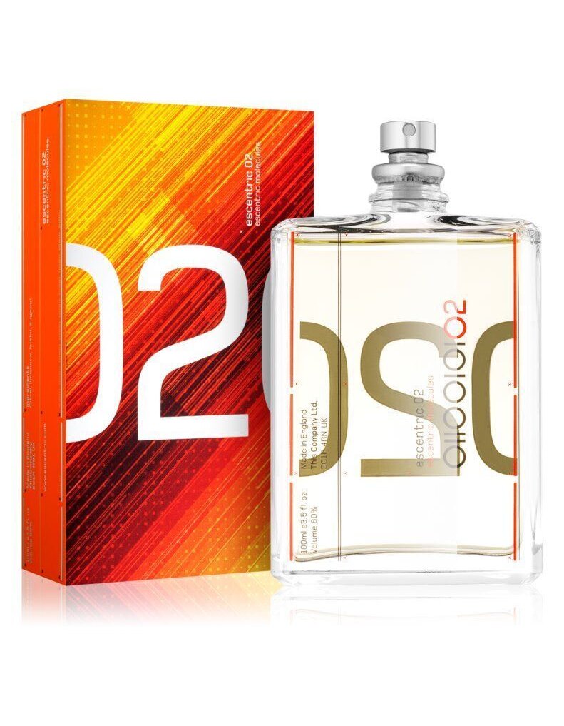 Parfumul Escentric 02 conține cea mai mare concentrație de Ambroxan posibilă (13,5 %), molecule sintetice cu o aromă asemănătoare ambrei. Ambroxanul este amestecat cu hedion, o moleculă verde, de iasomie, pentru un efect fresh asemănător celui de gin cu tonic. Caracterul lemnos radiant este datorat moleculei Iso E Super, care miroase a creioane ascuțite.