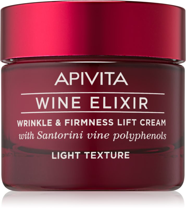 Crema eficientă bazată pe știința epigeneticii este Apivita Wine Elixir Wrinkle & Firmness Lift Cream Light Texture! Cu o textură mătăsoasă și lejeră, reactivează tinerețea pielii în cel mai eficient mod datorită polifenolilor, puternicele molecule anti - îmbătrânire din frunzele de viță de vie Santorini. Estompează ridurile, oferind în același timp o piele cu aspect mai ferm și contururi redefinite, îmbunătățind densitatea și elasticitatea acesteia.