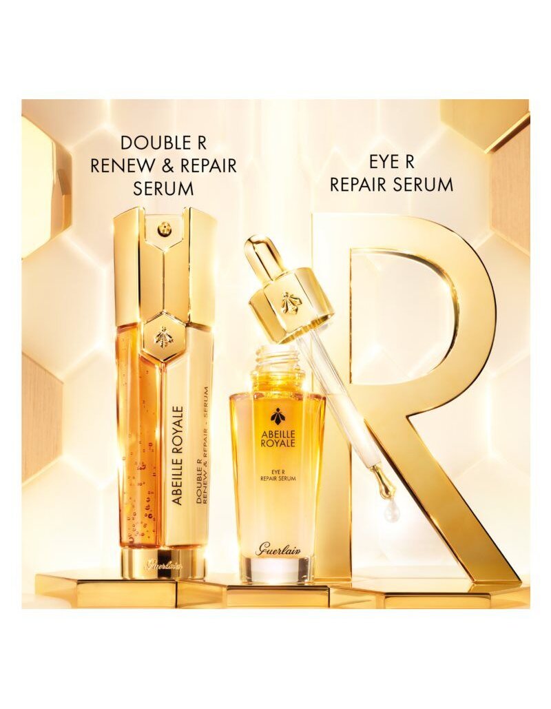 Doar câteva picături vă mai despart de un aspect vizibil instantaneu, mai tânăr și mai strălucitor. Serul regenerator pentru zona ochilor, GUERLAIN Abeille Royale Eye R Repair Serum conține o combinație a celor mai prețioase ingrediente naturale și a celor mai noi tehnologii, datorită cărora ochii dvs. vor arăta vizibil mai revitalizați.